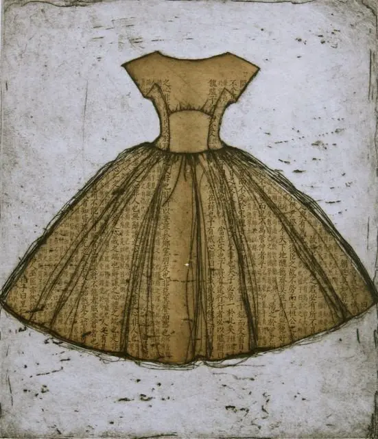 One of a series of etchings of vintage dresses