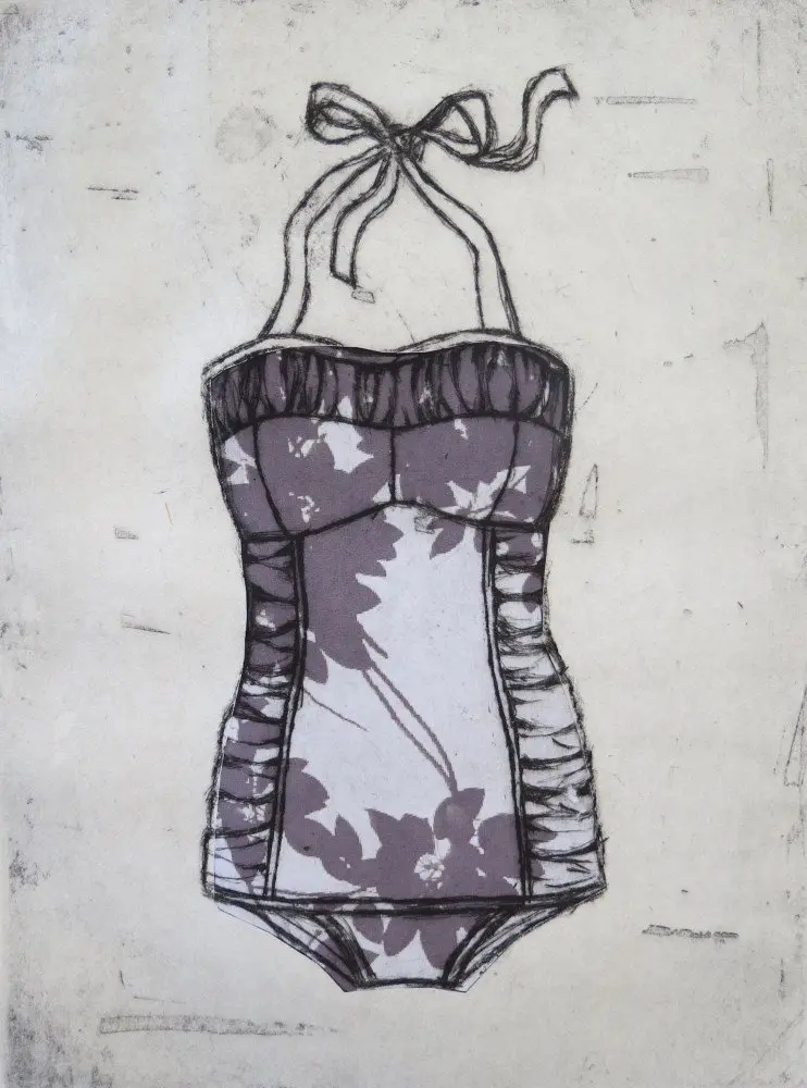 One of a series of etchings of vintage swimsuits