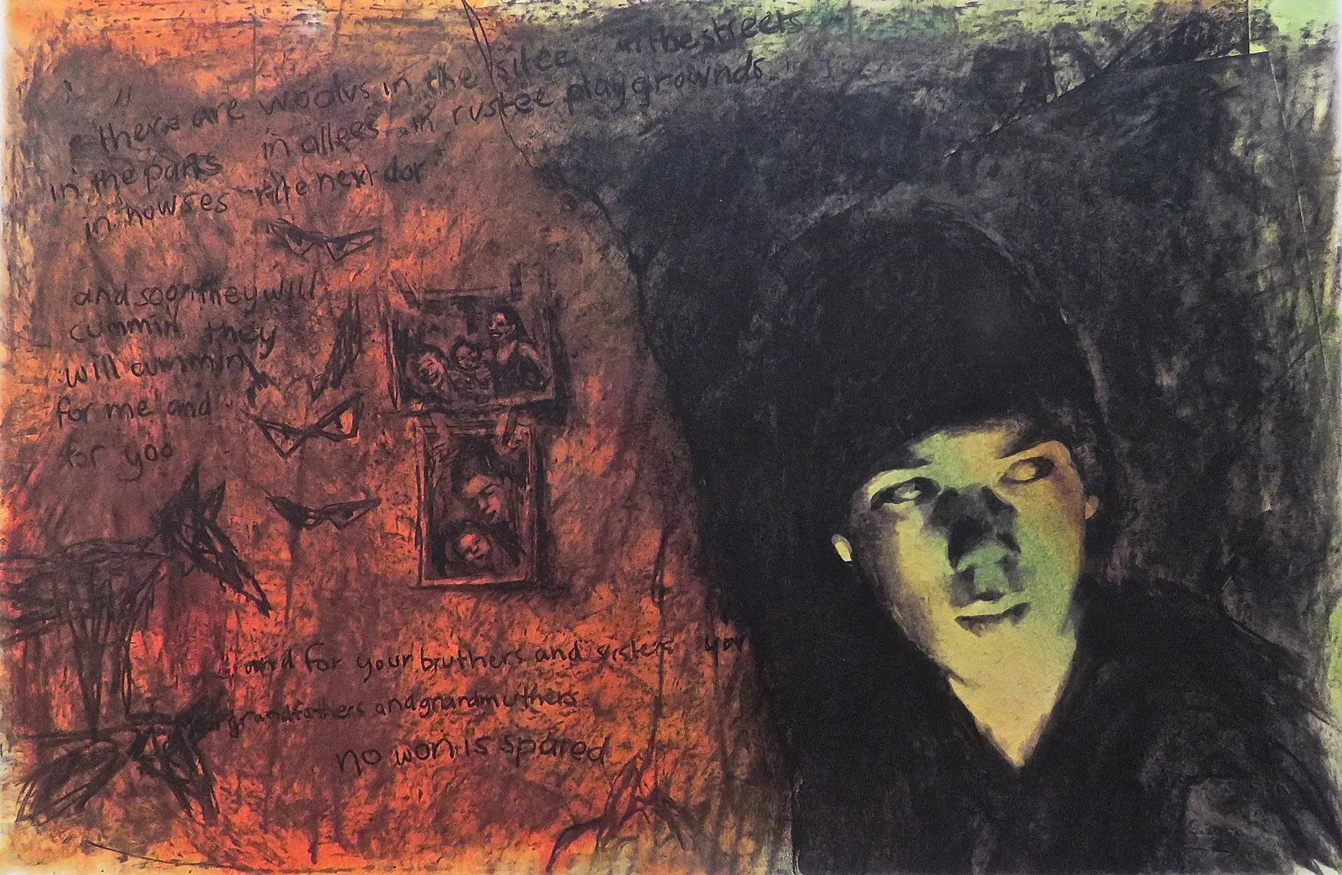 Giclee print of charcoal drawing with watercolour